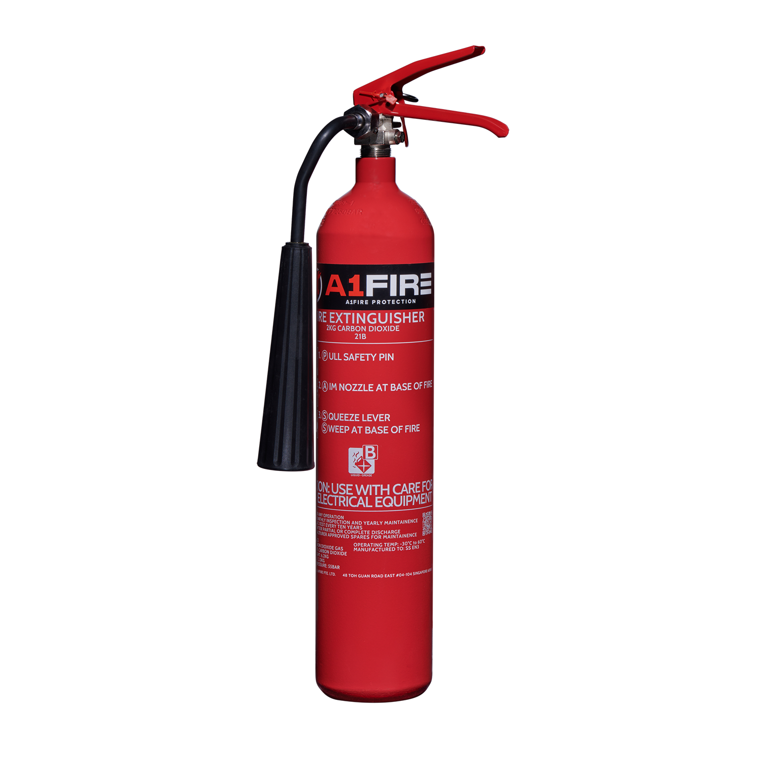 The 2KG Carbon Dioxide fire extinguisher is ideal for construction sites, heavy industries, large vehicles, and areas needing enhanced protection against early-stage fires. It comes with a 5-year local manufacturing warranty covering factory defects.