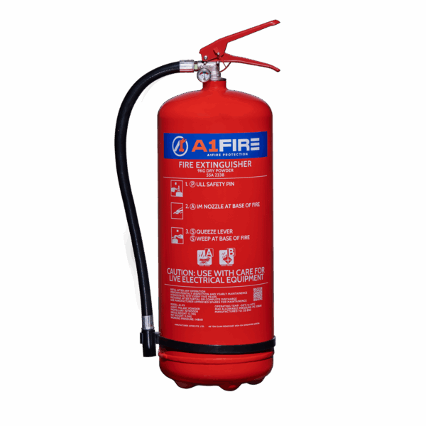 - The 9KG powder fire extinguisher is ideal for construction sites, heavy industries, large vehicles, and areas needing enhanced protection against early-stage fires. It comes with a 5-year local manufacturing warranty covering factory defects.